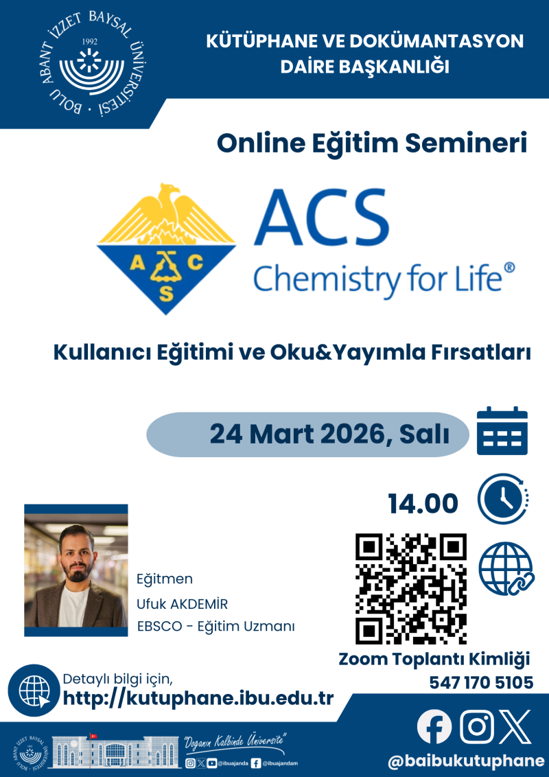 American Chemical Society (ACS) Veri Tabanı All Publications Paketi Aboneliği Gerçekleştirilmiştir
