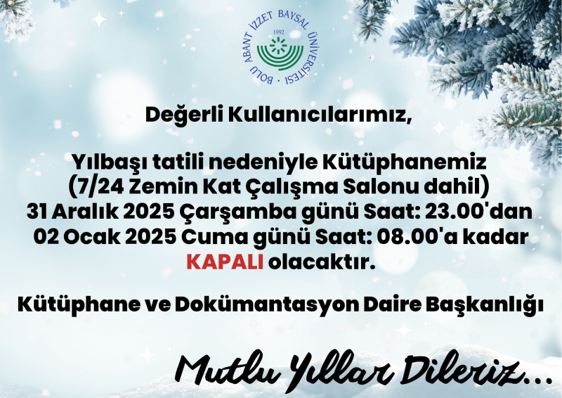Kütüphanemiz Yılbaşı Tatili Duyurusu