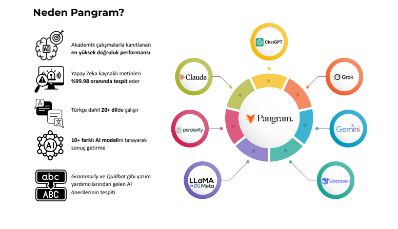 Yazılı şeffaflık ve akademik özgünlüğü desteklemek amacıyla, dünya çapında tanınmış bir yapay zeka içerik tespit platormu olan Pangram Labs, 01 Aralık 2025 tarihine kadar deneme erişimimize açılmıştır.
