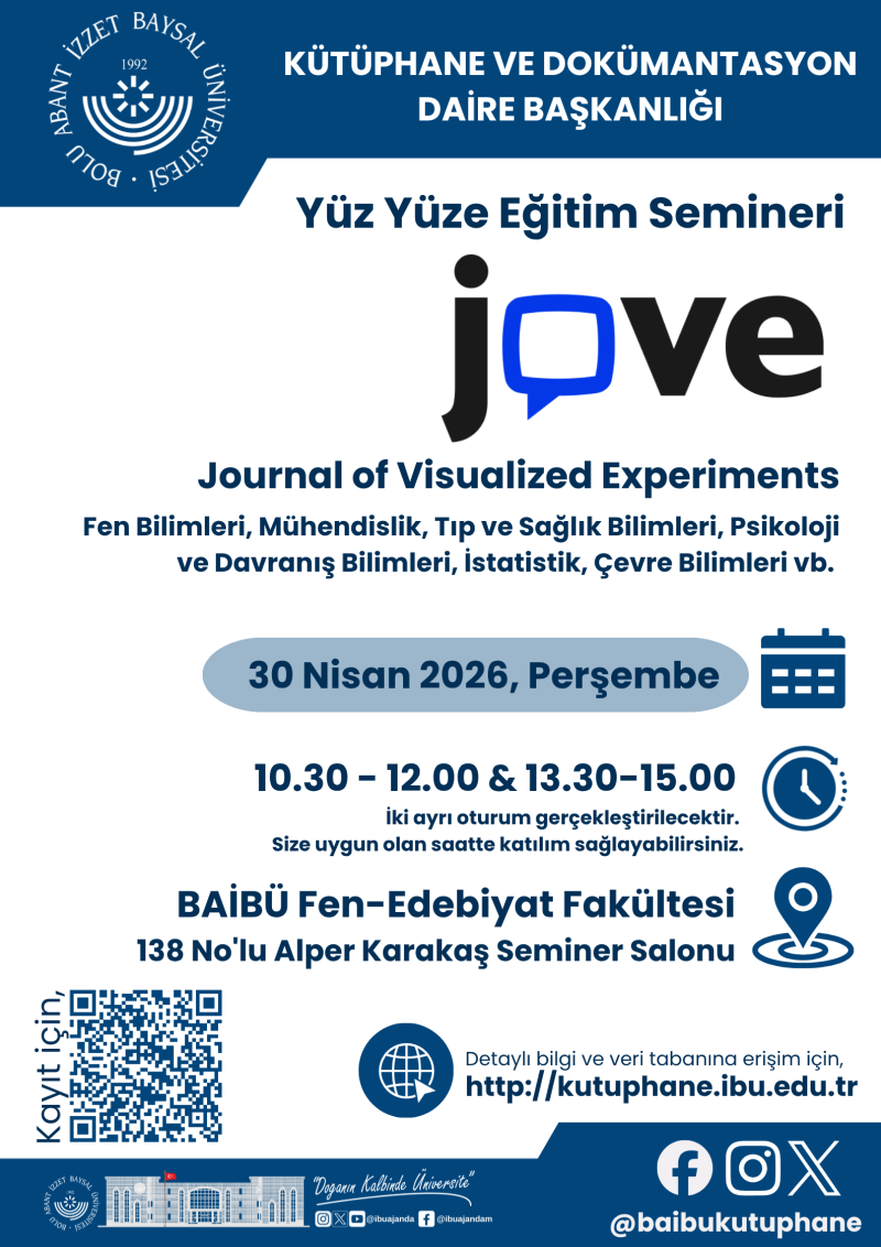 Yüz Yüze Eğitim Semineri: JOVE Veri Tabanı: Ders, Laboratuvar Çalışmaları, Sınav Destekleri ve Yeni Yapay Zeka Özellikleri